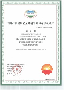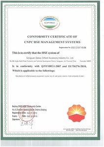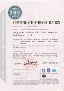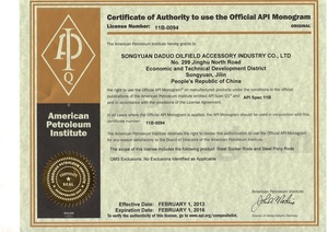 公司已通过国际ISO9001质量管理体系认证与美国石油学会的API Q1质量管理体系认证,获得API 5CT油管套管、API 5LD内覆合金层管线管、API 11B抽油杆和API11AX抽油泵的API会标授权。抽油杆产品和陶瓷抽油泵产品获《全国工业产品生产许可证》,是中国石油能源一号网网络会员单位。