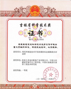 公司开发完成的超长金属陶瓷复合钢管制造方法从根本上解决了陶瓷复合钢管在长度、直线度和表面粗糙度方面的技术难题,并率先应用到了石油开发领域,被专家称之为油田专用钢管领域的一场技术革命。该项技术2014年获省部级科技进步一等奖,被确定为重大科技成果转化项目,